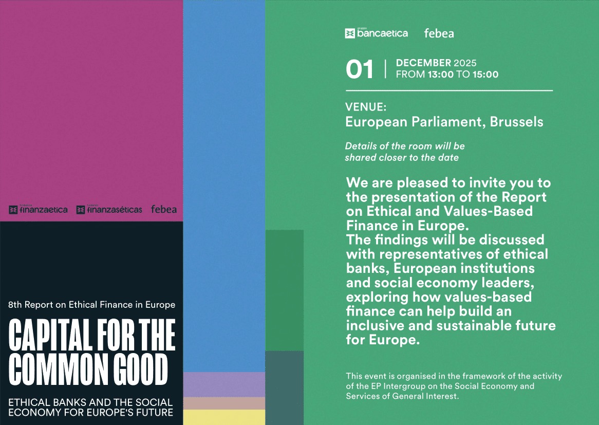 Un espacio para conocer el estado del sector. La cita permitirá compartir los principales resultados del informe, dialogar sobre el papel creciente de las finanzas éticas en Europa y poner en valor su contribución a una economía más justa, transparente y orientada al bien común.