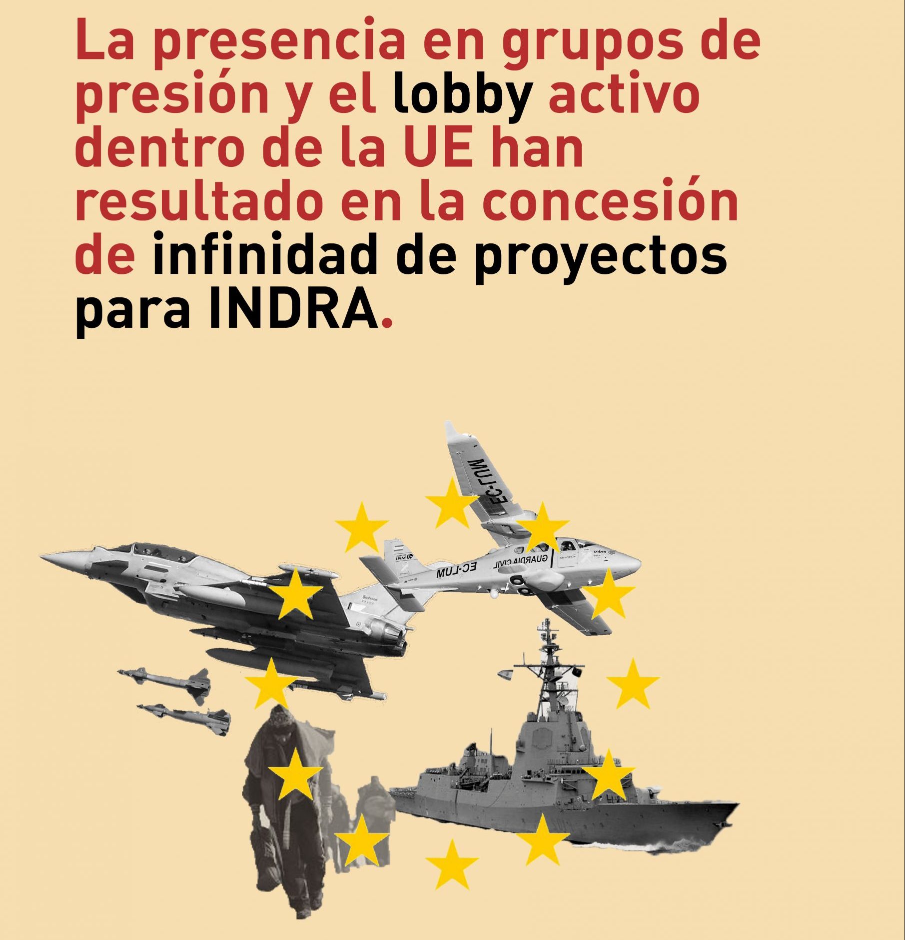 - Exigimos la paralización de los procesos de cabildeo en la política de la UE y España en políticas de defensa y seguridad y, en su lugar, contribuir a la búsqueda del bienestar, los derechos y las libertades de todas las personas.