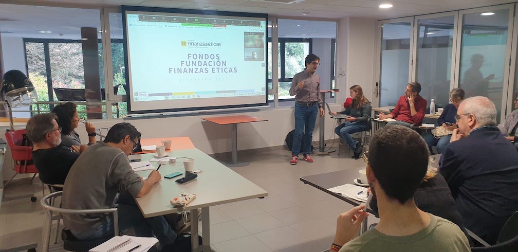 El sábado 28 de septiembre de 2024 ha tenido lugar una Asamblea extraordinaria de Banca Etica, en Turín (Italia). Además de debatir sobre los asuntos internos propuestos en el orden del día, la Asamblea ha tenido un momento de recurso para Mª Socorro Villalba (Cachi), patrona de la Fundación durante los últimos años. Mediante un pequeño vídeo con fotos las personas asistentes han pedido dedicar un homenaje al trabajo desarrollado por Cacho en favor del Grupo Banca Etica.